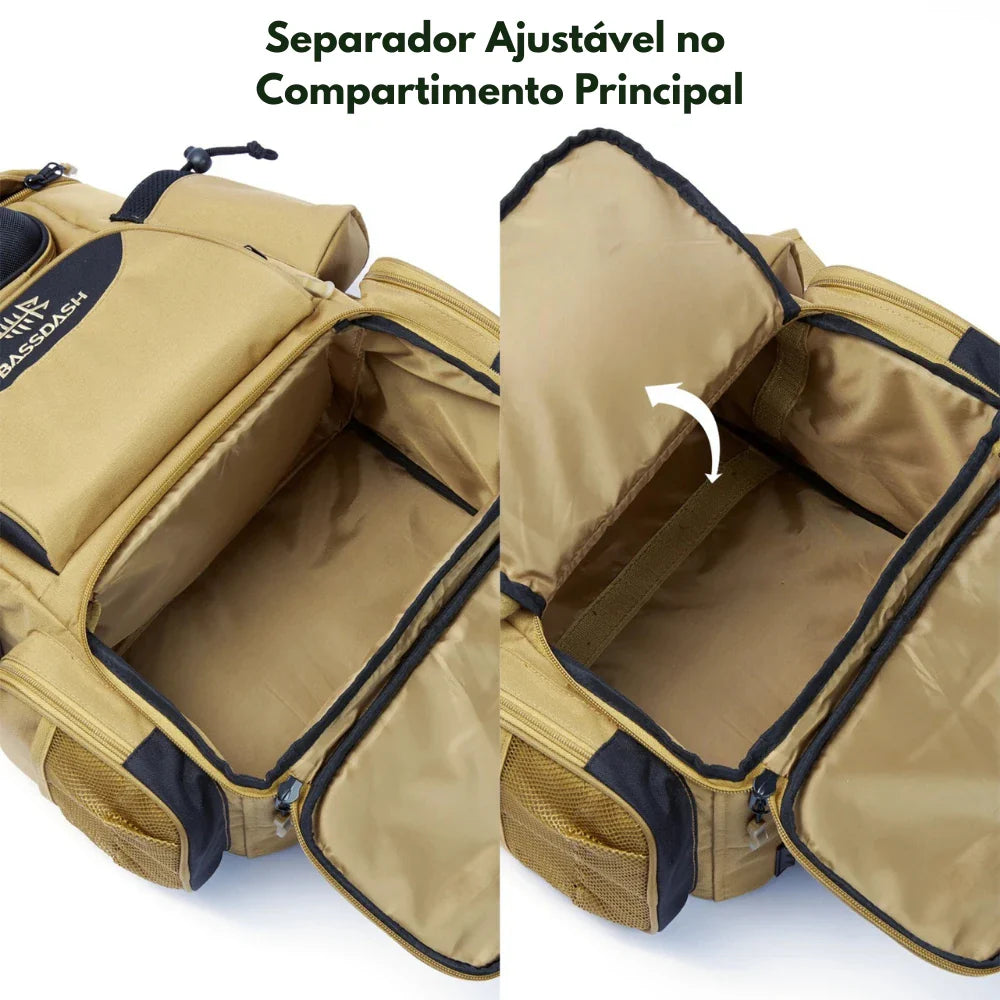 A Mochila de Pesca ProTackle Bassdash Caqui 40L foi projetada para pescadores exigentes que precisam manter tudo ao alcance das mãos. Com amplo espaço interno e compartimentos bem distribuídos, acomoda até 3 caixas 3600, garantindo praticidade e agilidade em suas pescarias.