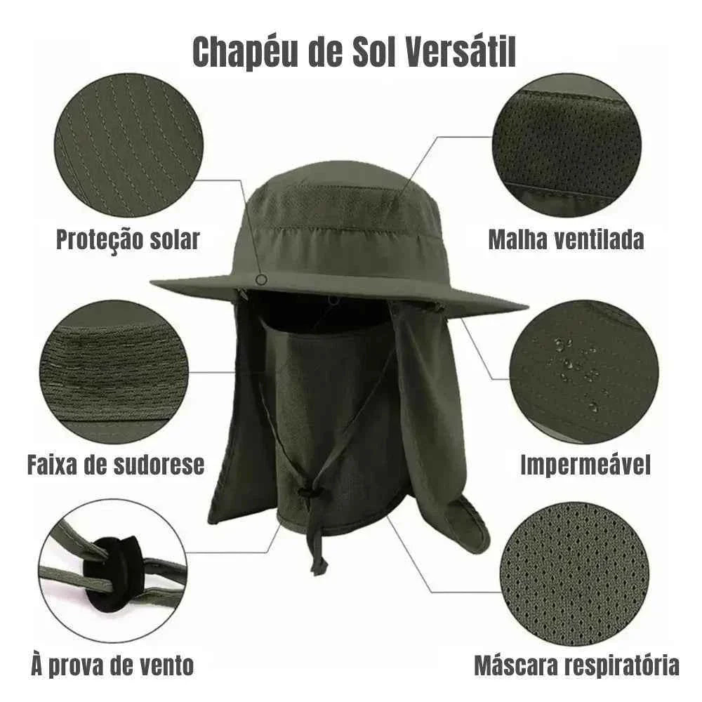 O Chapéu de Sol Camping & Pesca Caqui é perfeito para quem busca proteção, conforto e praticidade em aventuras ao ar livre. Com proteção solar UV50+, bloqueia os raios nocivos, evitando queimaduras e envelhecimento precoce. Produzido em nylon 100% de secagem rápida, mantém a cabeça fresca e seca até nos dias mais quentes. Leve, dobrável e fácil de transportar, é o acessório indispensável para pesca, trilhas, camping ou até uso urbano.