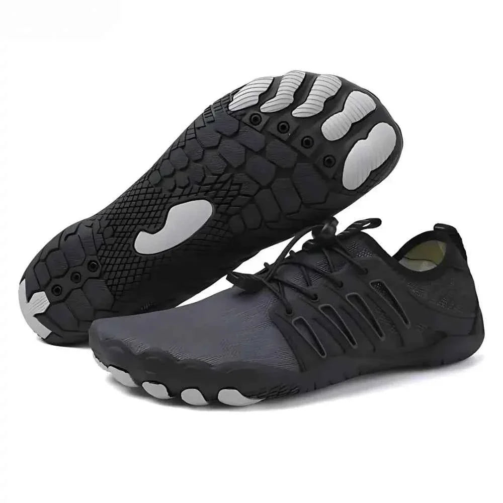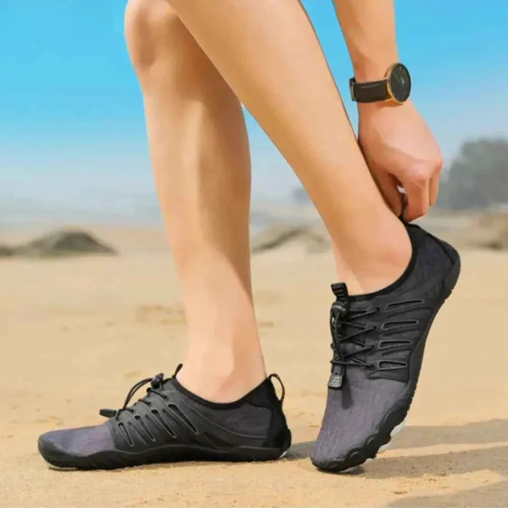 A Sapatilha Náutica HydroFit Preta foi desenvolvida para garantir segurança, leveza e liberdade em qualquer aventura. Sua sola antiderrapante de borracha proporciona firmeza em superfícies molhadas, enquanto o sistema de drenagem rápida mantém os pés secos e confortáveis. Com tecido respirável, flexível e de secagem rápida, adapta-se perfeitamente aos pés, oferecendo conforto prolongado em ambientes aquáticos, trilhas leves e até no uso urbano.