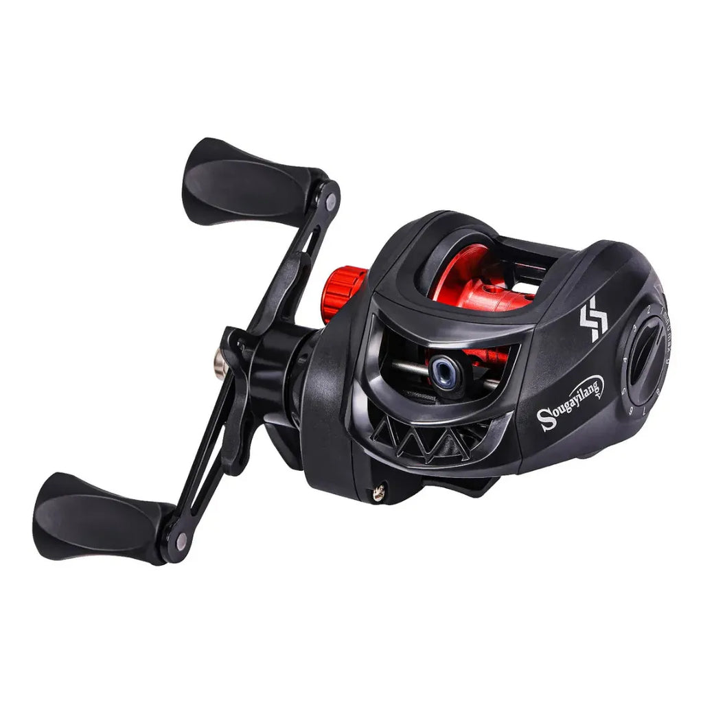 Com recolhimento rápido 7.2:1 e freio preciso, a carretilha Sougayilang garante arremessos longos, controle absoluto e respostas imediatas. Sua manivela ambidestra e corpo leve em alumínio oferecem equilíbrio e ergonomia durante toda a pescaria.